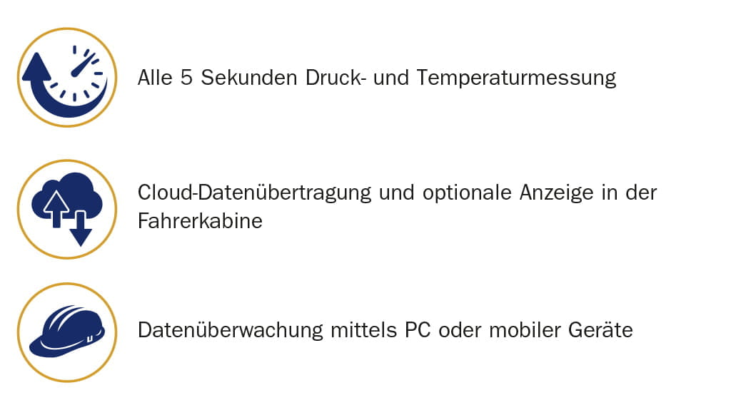 Trelleborg TPMS, für die Bauwirtschaft entwickelt, ist ein Cloud-basiertes System mit integrierten Reifensensoren, einer zentrale Schnittstelle im Fahrzeug und einer Online-Plattform. Es hilft, den Flottenbetrieb vollständig zu überwachen und gefährliche Unfälle zu vermeiden.